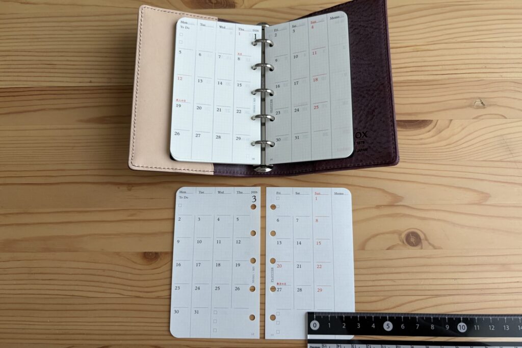 KNOXからM5サイズのスケジュールリフィルは出ていなかったので、同じ株式会社デザインフィルのPLOTTERのリフィルを選びました。